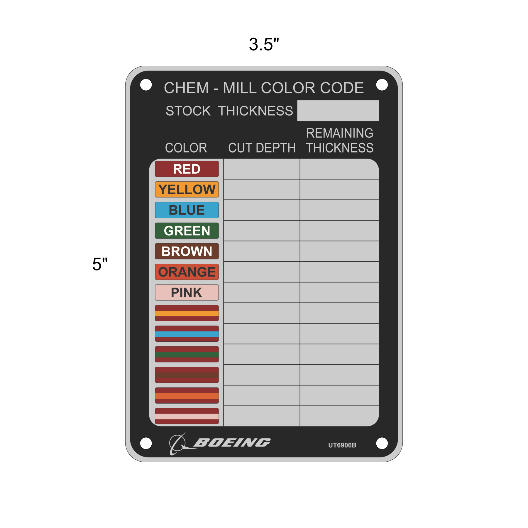 UT-6906B is a (.040″ x 3.5″ x 5″) aluminum tag with four holes and rounded corners.