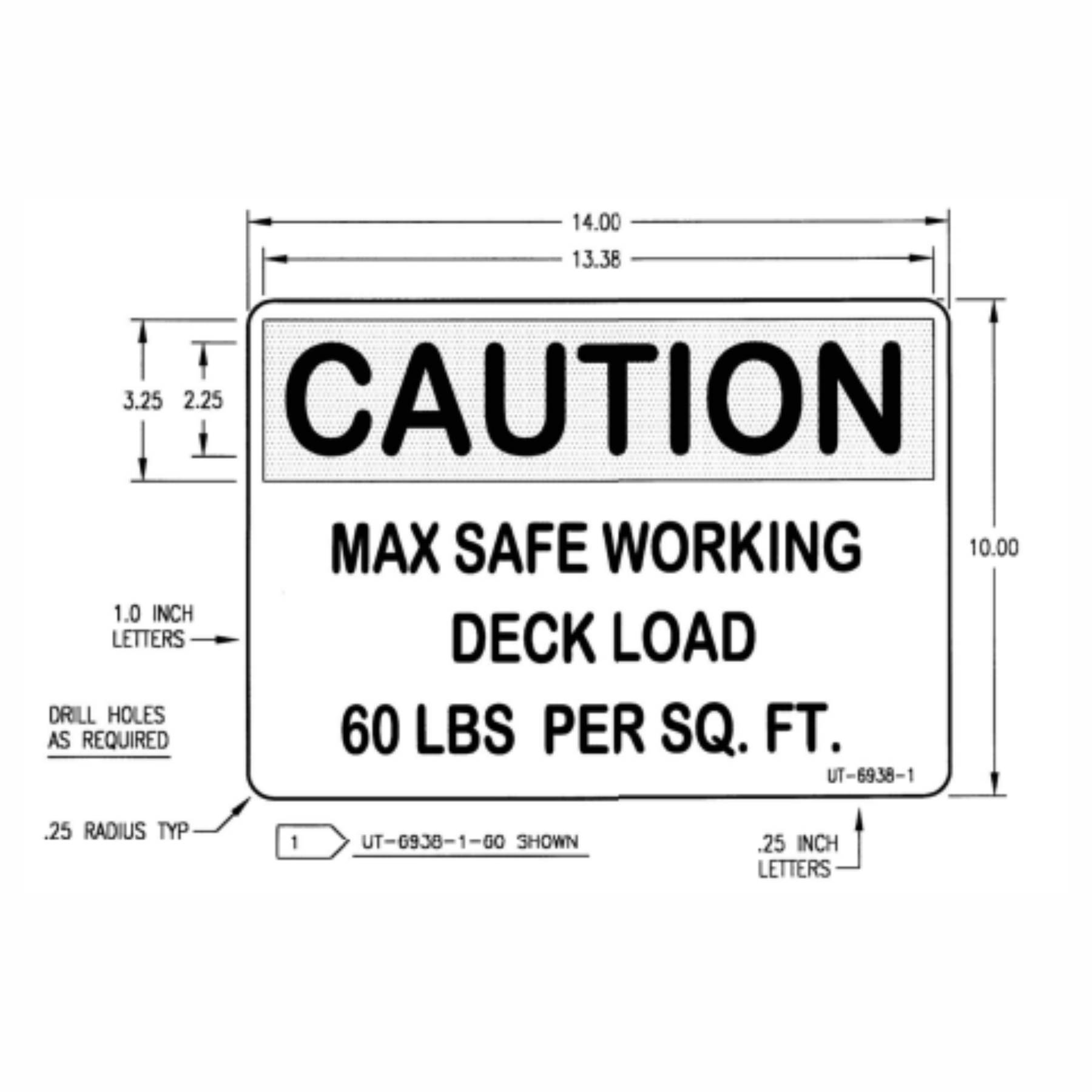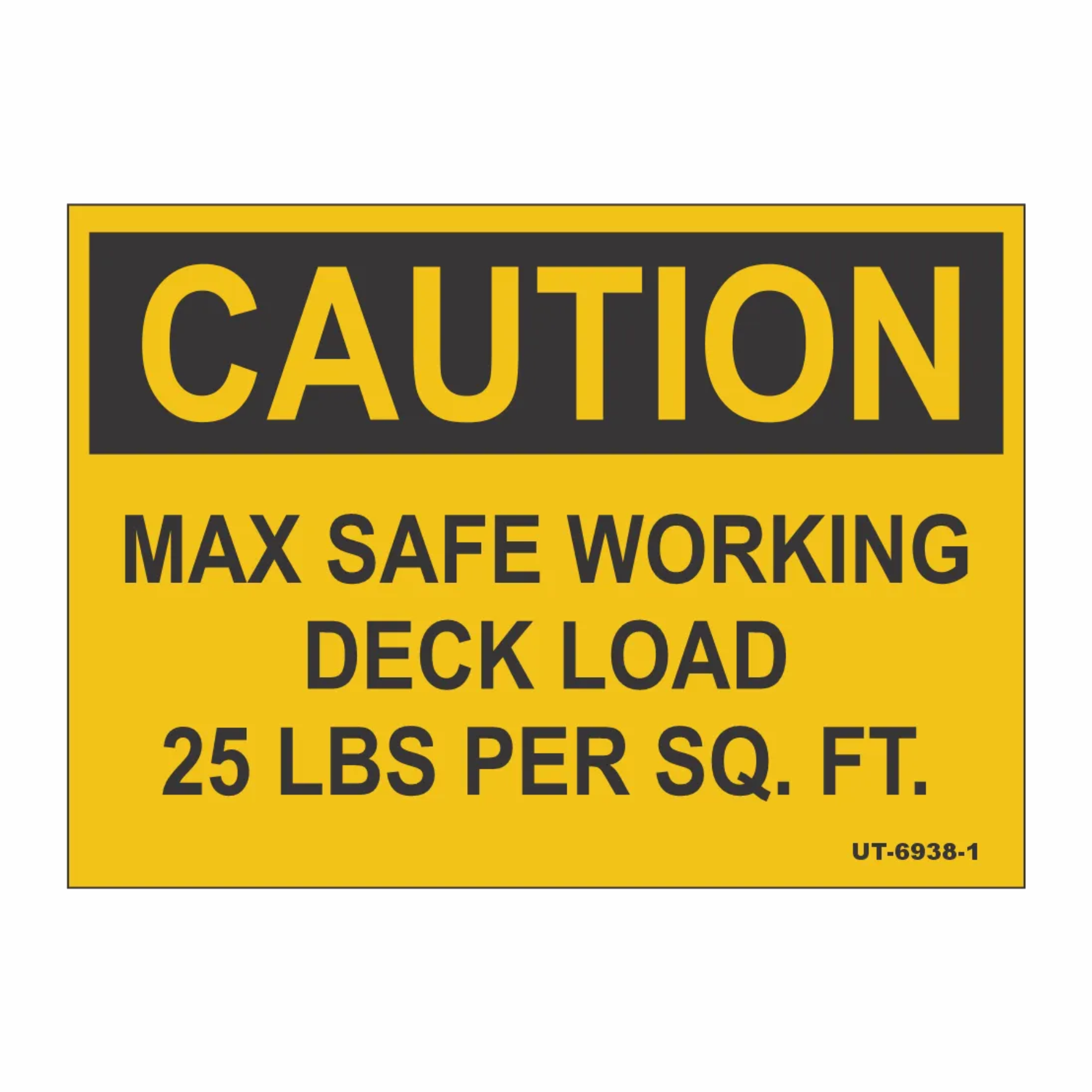 UT-6938-1 or UT-6939-XX is a customizable (.040″ x 14.0″ x 10.0″) yellow and black aluminum sign with rounded corners. Please enter the weight needed (‘XX’). (Ex. If weight is 60 lbs please enter 60) Text is 1″ tall.