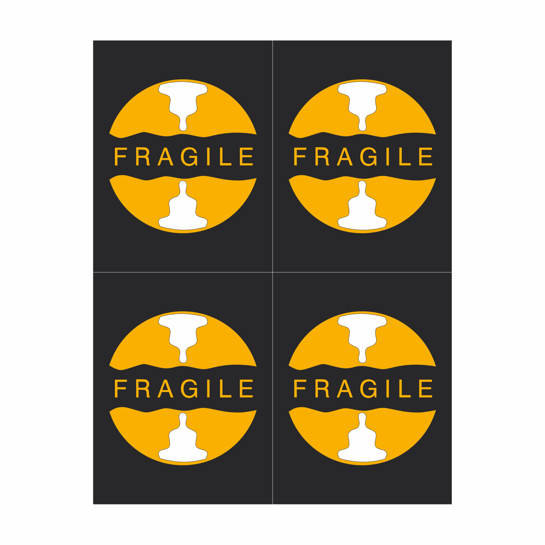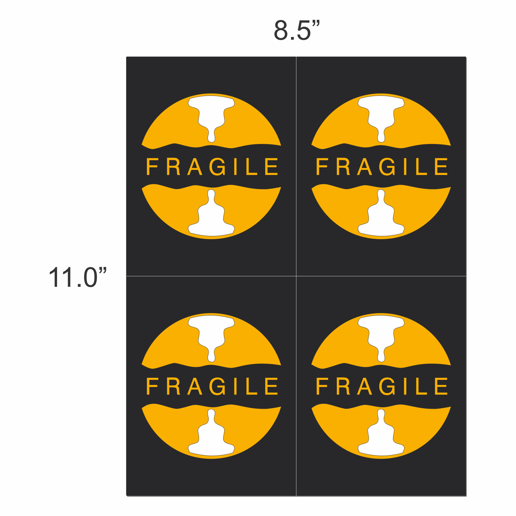 UT-6976N-2 is an (8.5″ x 11″) adhesive-backed Scotchcal Film decal. “Fragile” Rev CD 27-Nov-18. (4 per sheet, each decal is a 4″ adhesive circle).