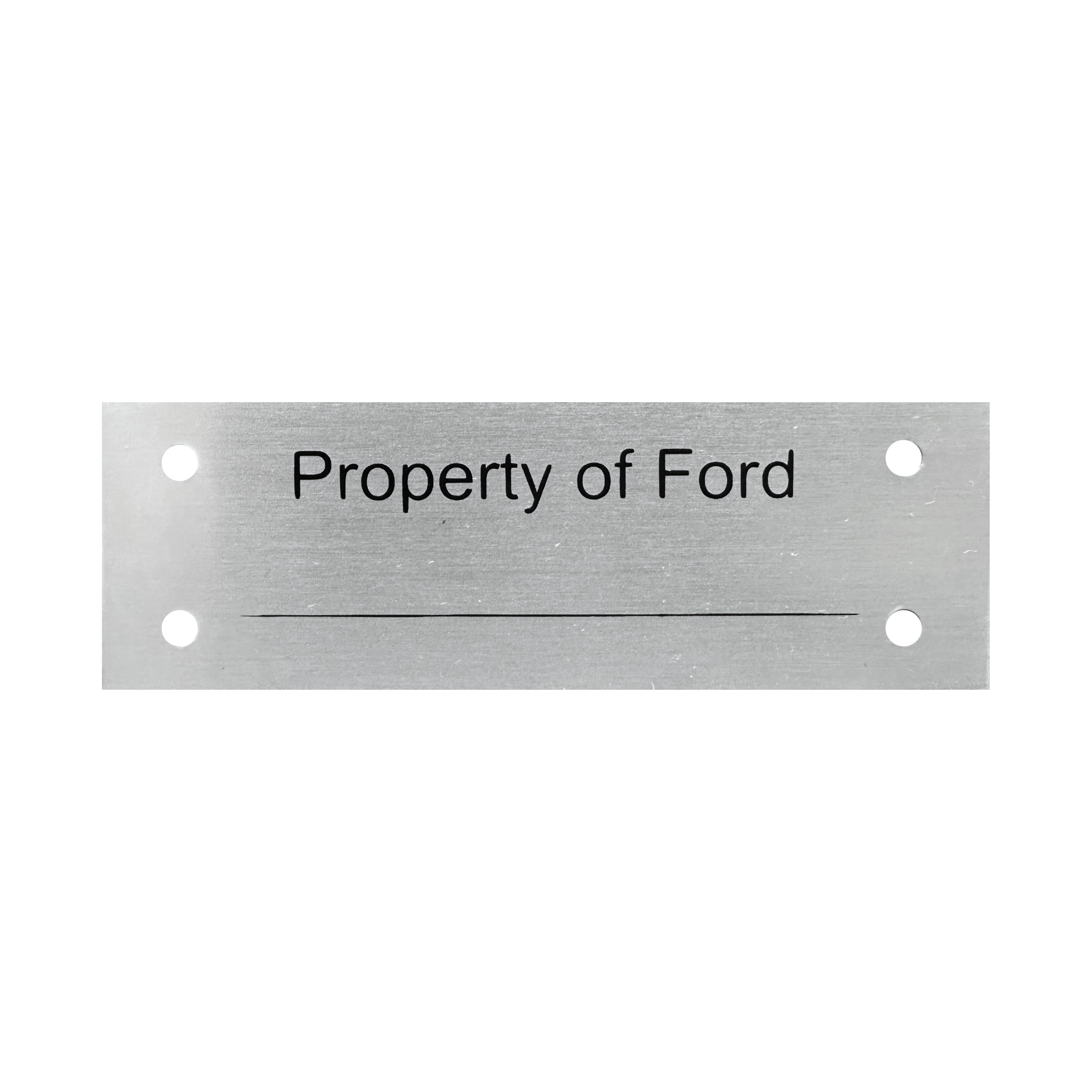 Property of Ford are (.062″x1″x3″) aluminum anodized black and clear with 4 1/8″ holes.