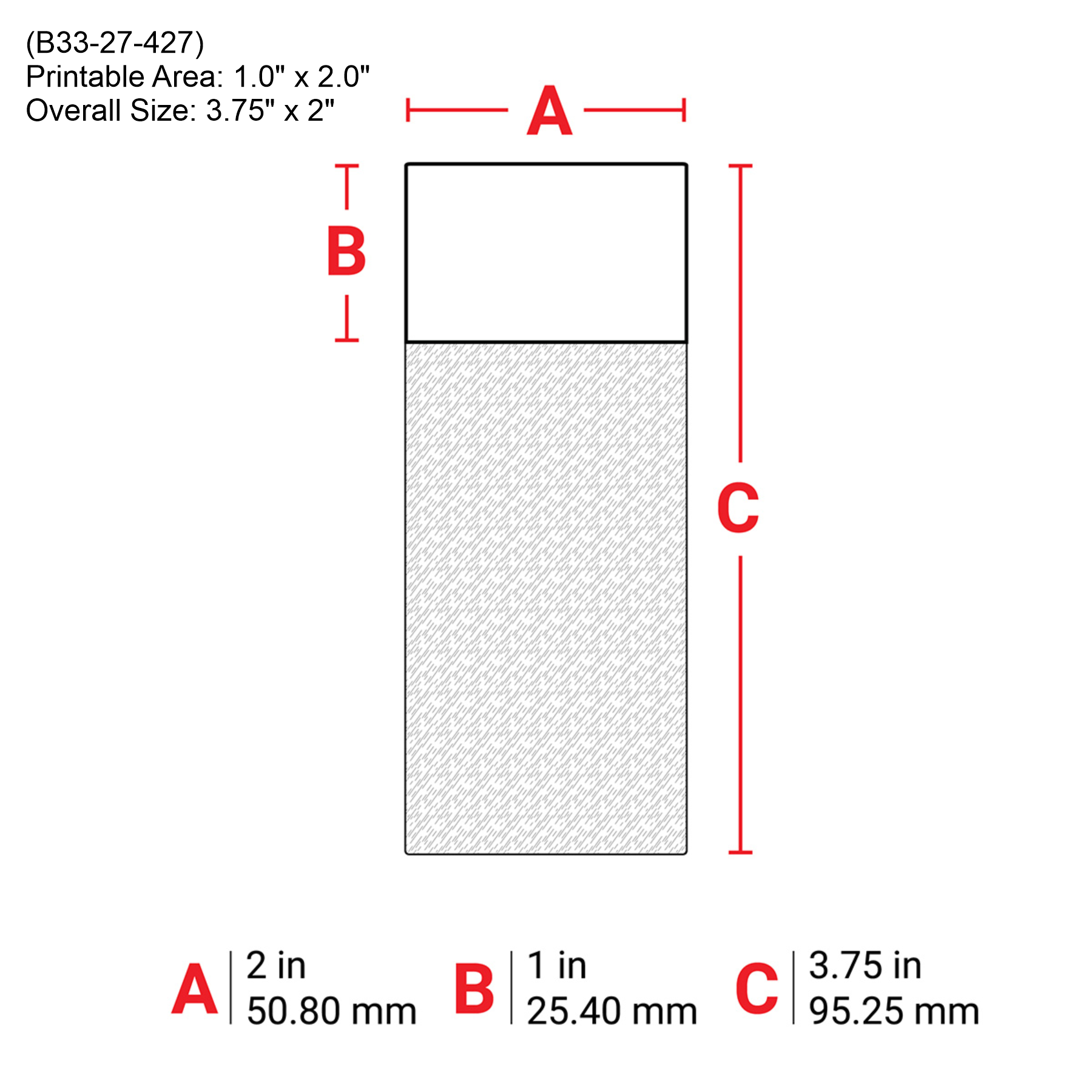 - 1.0″ x 2.0″ (Overall Size: 3.75″ x 2″ ) (B33-27-427)