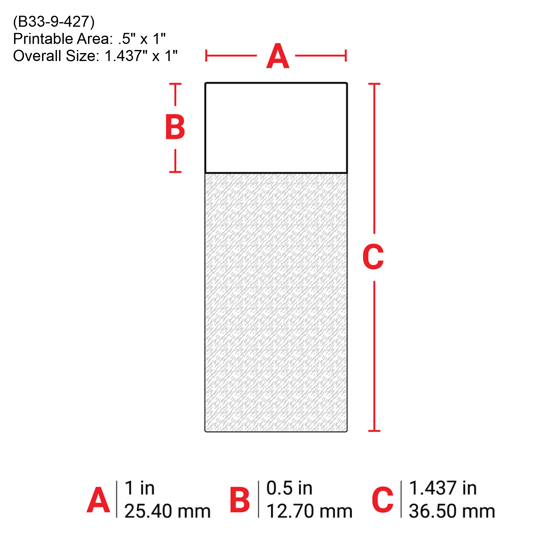 - .5″ x 1″ (Overall Size: 1.437″ x 1″ ) (B33-9-427)