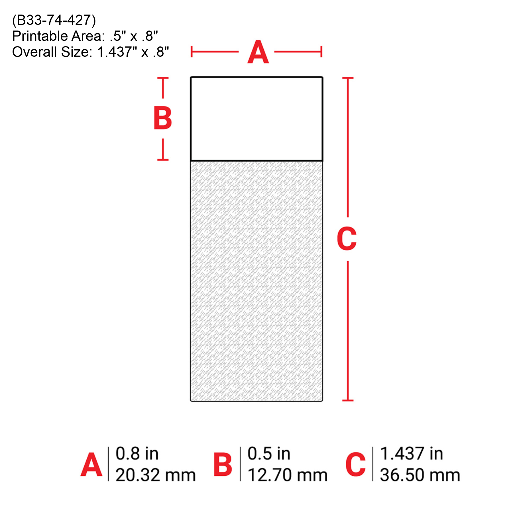 - .5″ x .8″ (Overall Size: 1.437″ x .8″) (B33-74-427)